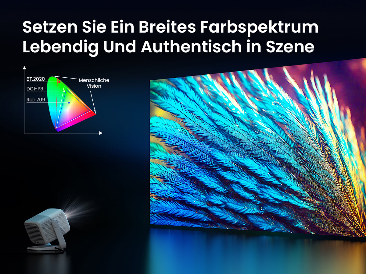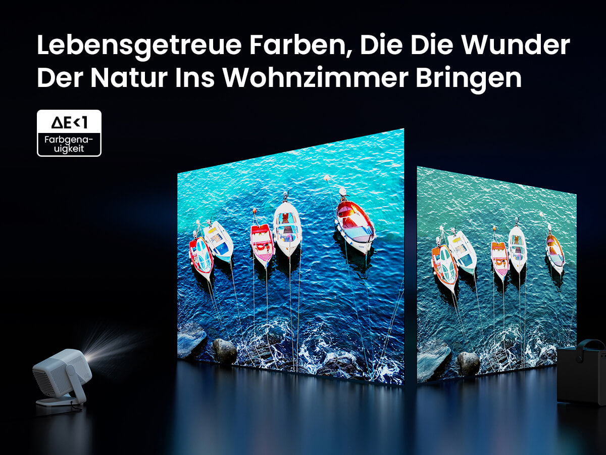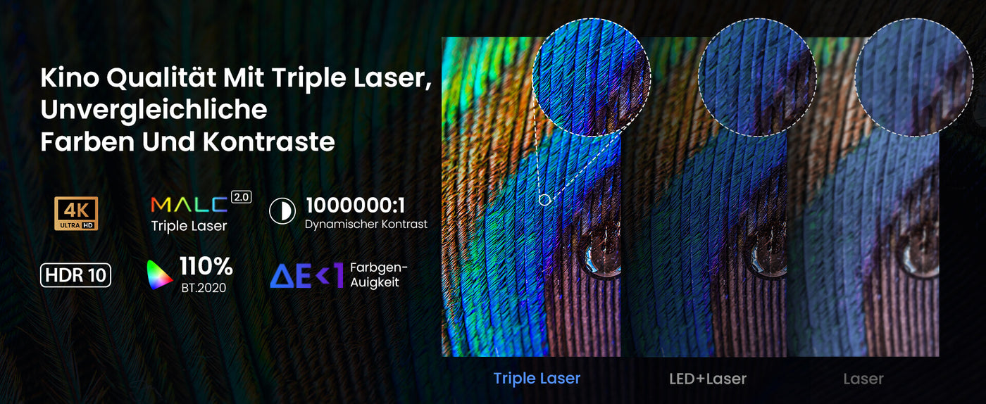 ● Erleben Sie Farben pur: Dank des MALC 2.0 Triple-RGB-Lasers liefert der N1S 4K ultra-lebendige, regenbogenfreie Bilder mit 110 % BT.2020-Farbraumabdeckung, 1100 ISO-Lumen und 1,07 Milliarden Farben.