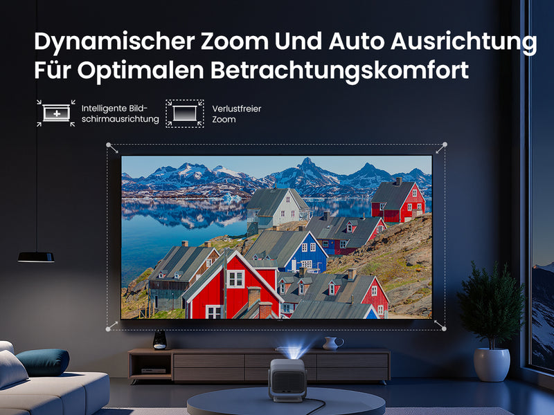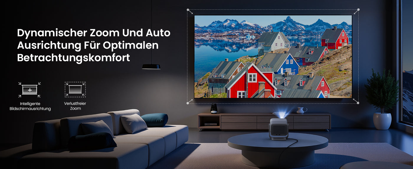 ● Flexibler Gimbal für sofortigen Autofokus: Der um 127° drehbare Gimbal ermöglicht eine mühelose Projektion auf jeder Oberfläche mit Echtzeit-Autofokus, Trapezkorrektur und intelligentem Augenschutz für klare, sichere und vielseitige Betrachtung überall.