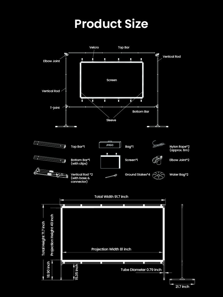 ● Durable & Versatile: Anti-wrinkle, light-resistant, and supports both front and rear projection.