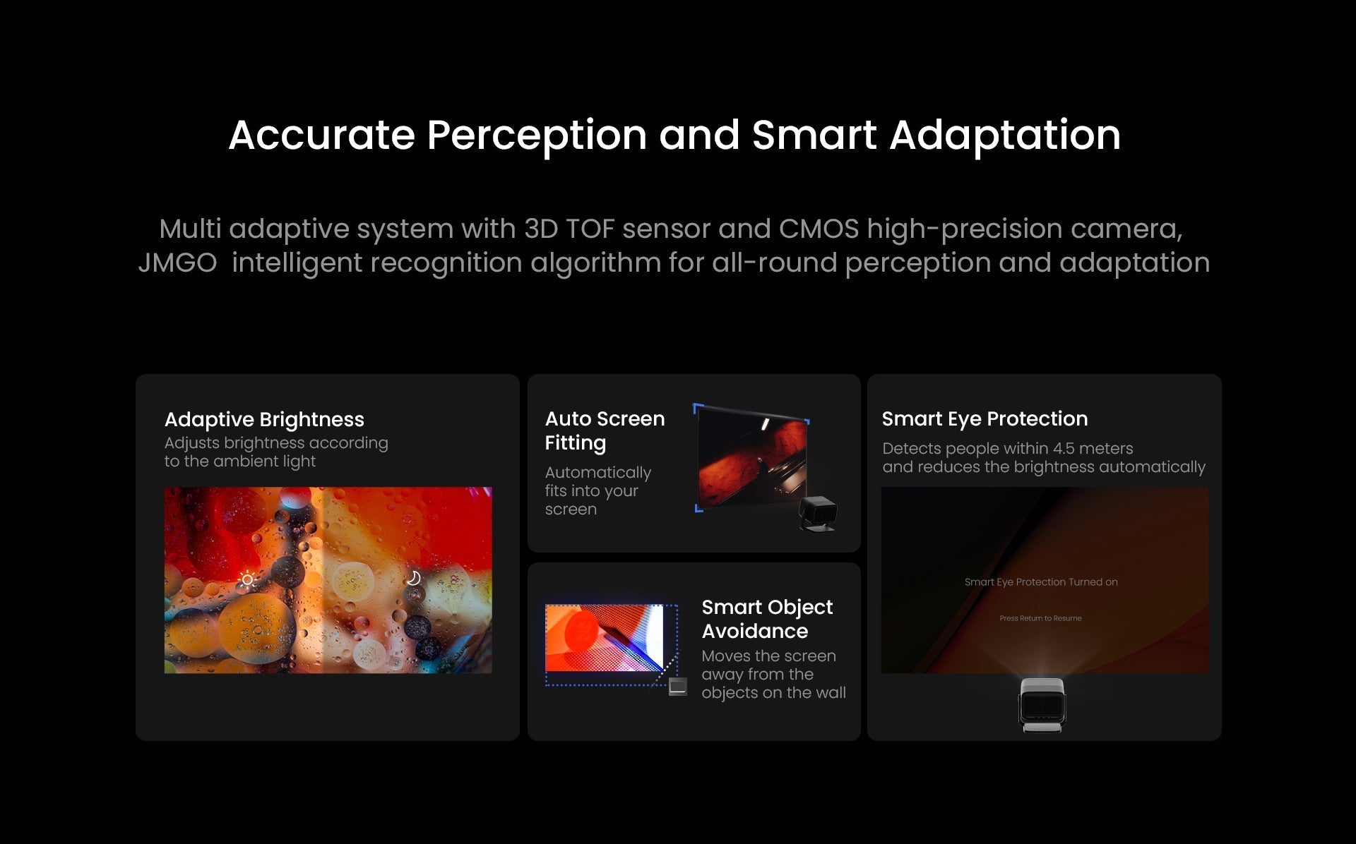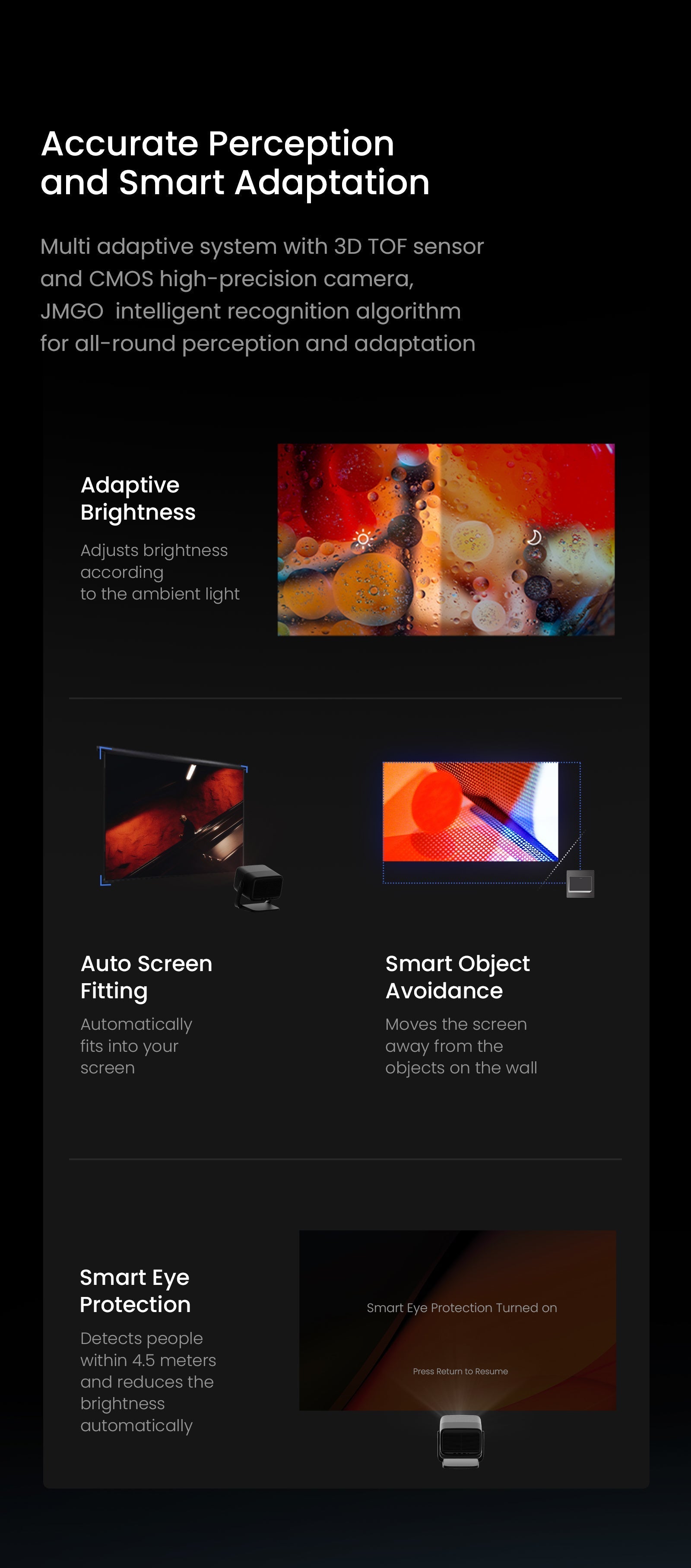 - Multi Adaptive System: Smart sensors and AI-driven features like auto keystone, object avoidance, and screen fitting calibrate your image instantly.
