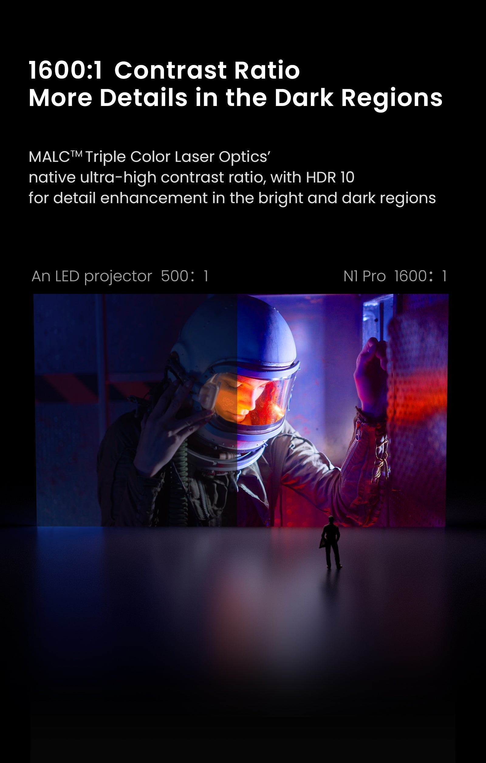 - Native 1080P Resolution: Experience crisp FHD (1920×1080) with HDR10, 110% BT.2020 color, and 1600:1 contrast for bright, vivid images up to 150".