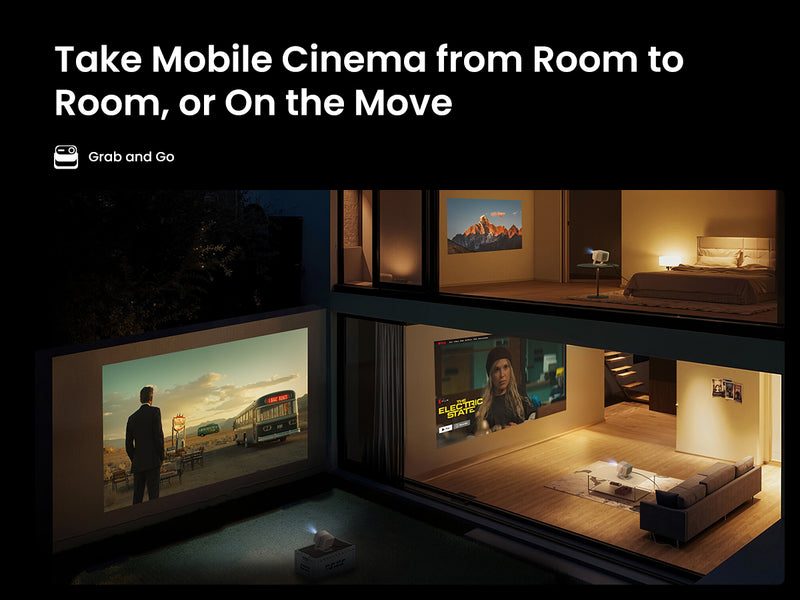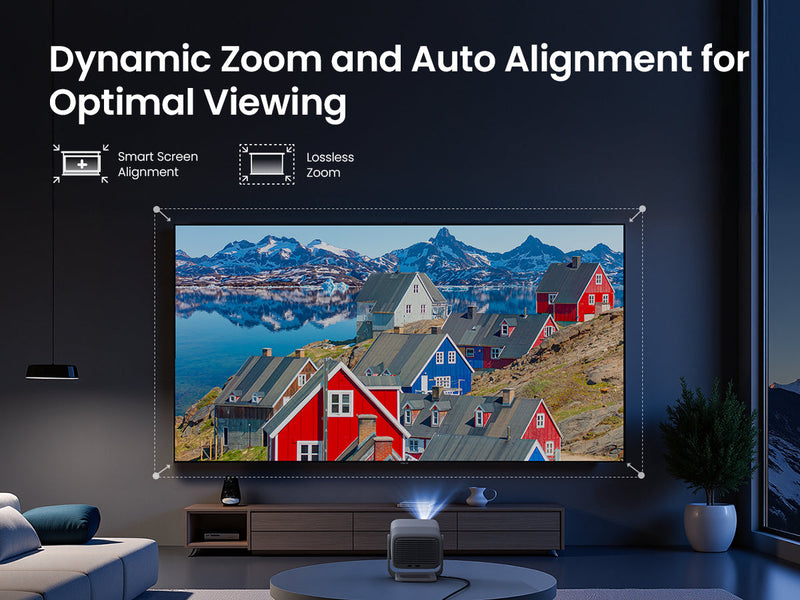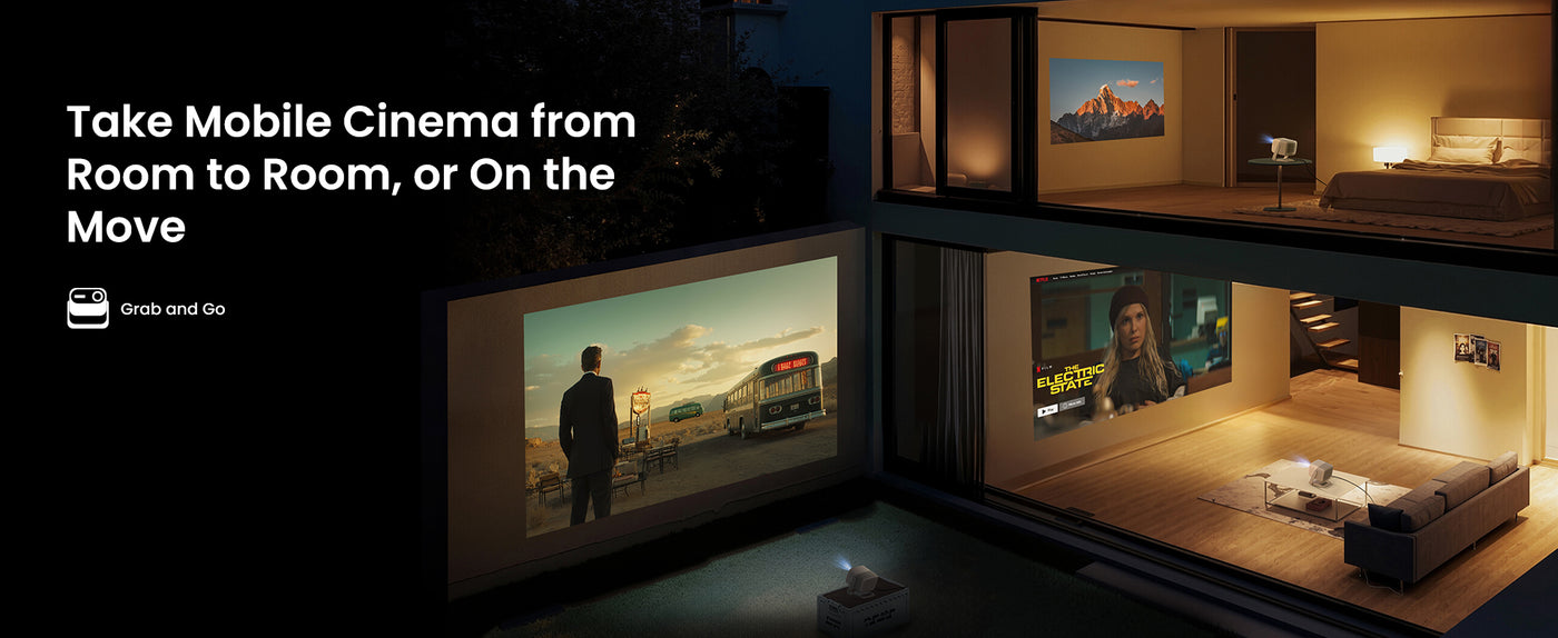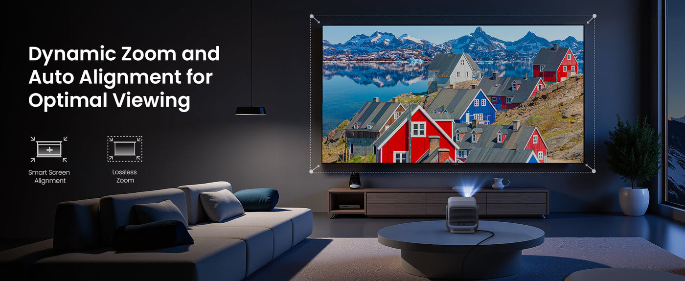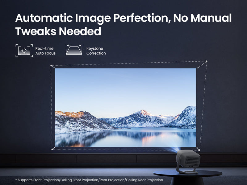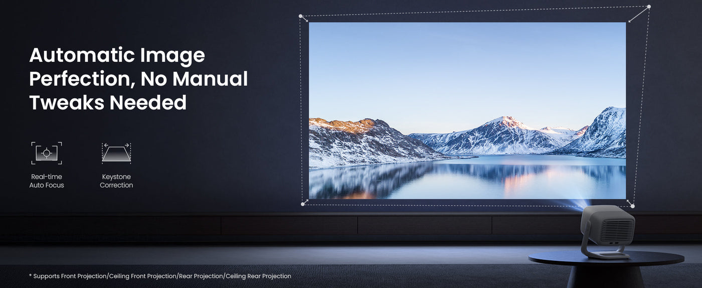 ● Flexible Gimbal for Instant Auto Focus: 127° rotatable gimbal enables effortless projection on any surface, with real-time autofocus, keystone correction, and smart eye protection for clear, safe, and versatile viewing anywhere.