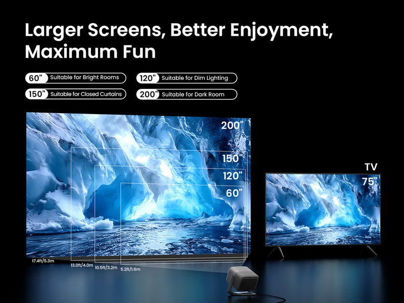 ● Experience 4K Cinematic Brilliance: Transforms your home into a theater with 4K HDR clarity, massive 200" screen, 360° Dolby sound, and immersive 3D.