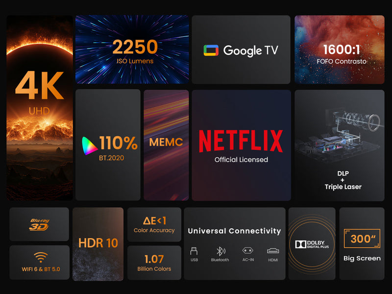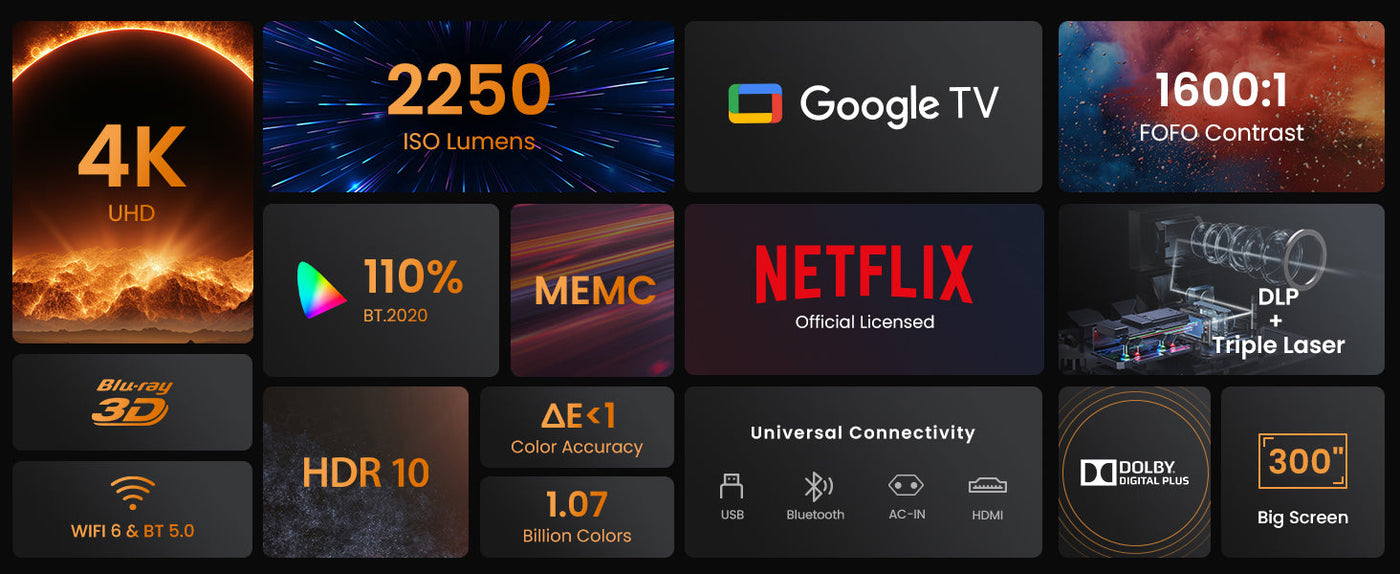 Cinematic Color Explosion: Rich 4K visuals with ultra-wide color gamut and 1600:1 contrast for lifelike brilliance.