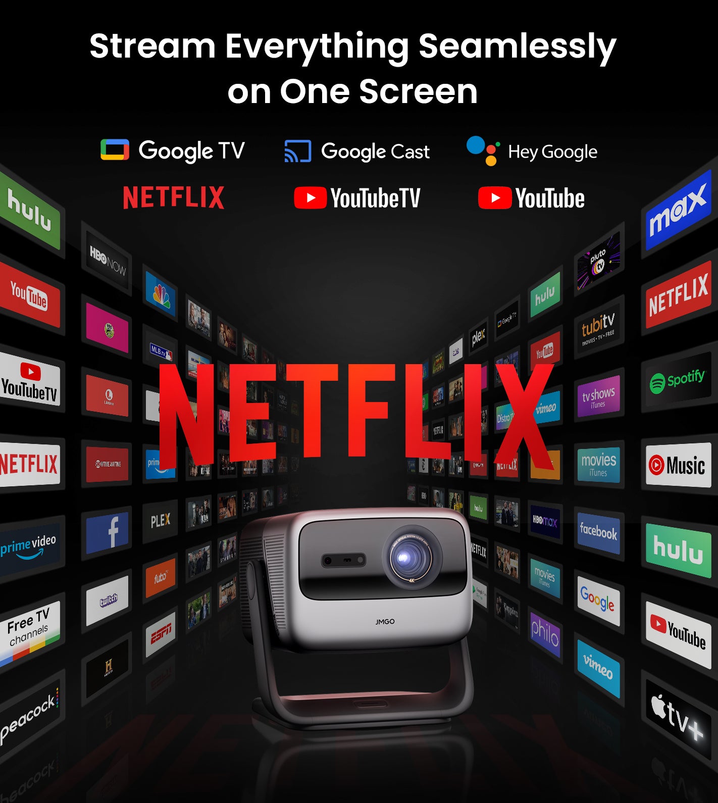 The JMGO N1S Ultimate 4K boosts its usefulness with Google TV and official Netflix. Its 3500-lumens brightness means it can work practically anywhere, while making the most of HDR content, delivering bright, richly coloured scenes.