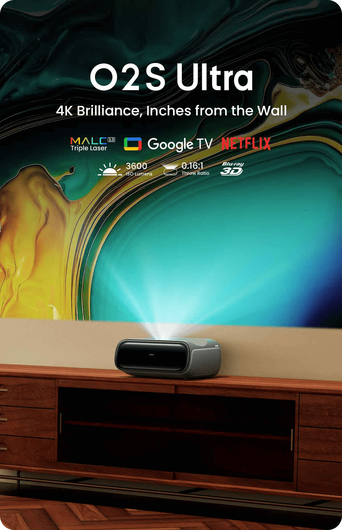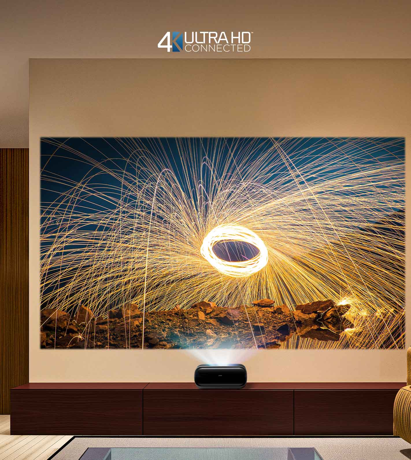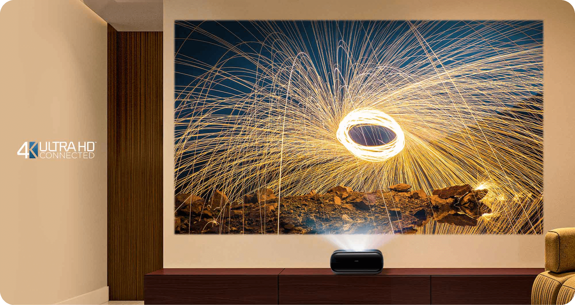 - 0.16:1 Ultra Short Throw: Enjoy a massive 100" display from only 6.6 inches away from the wall — a breakthrough design that’s even shorter than 0.25:1, delivering more flexibility in any space.