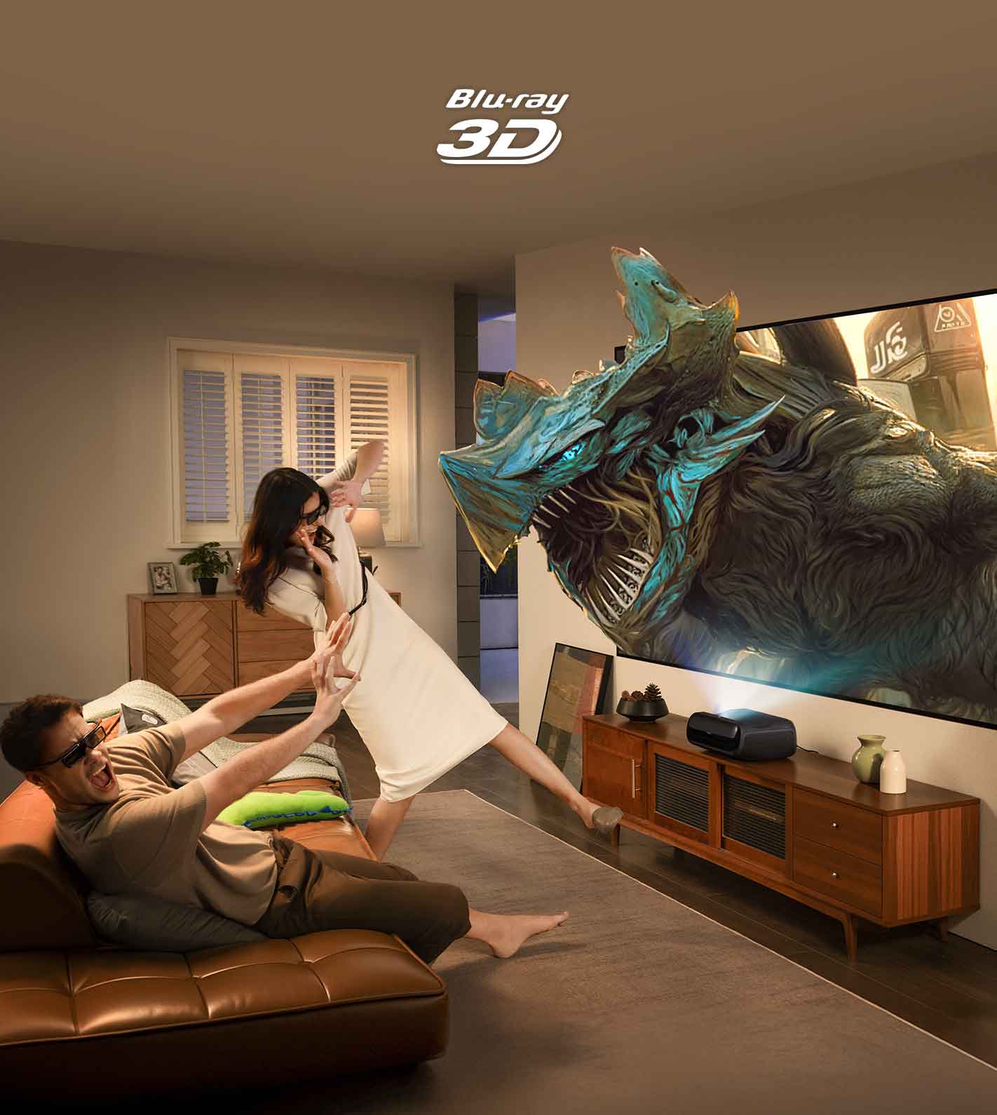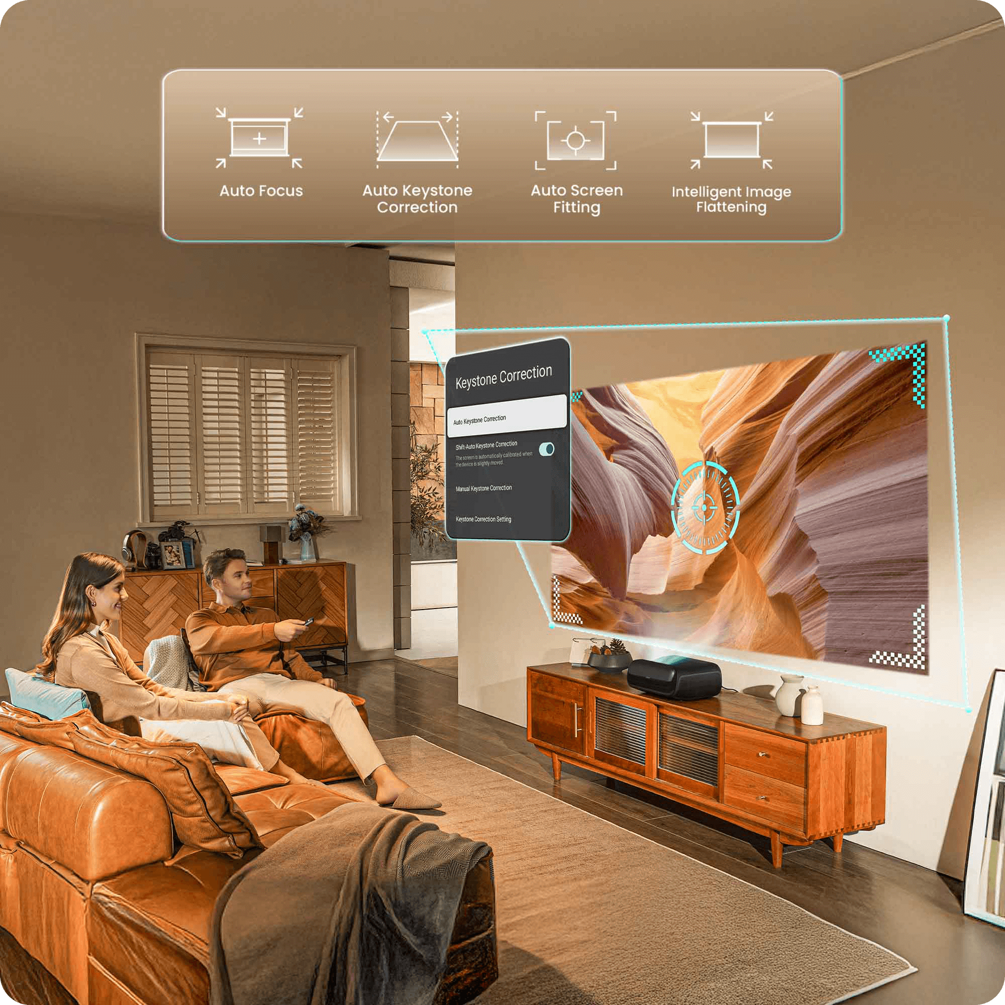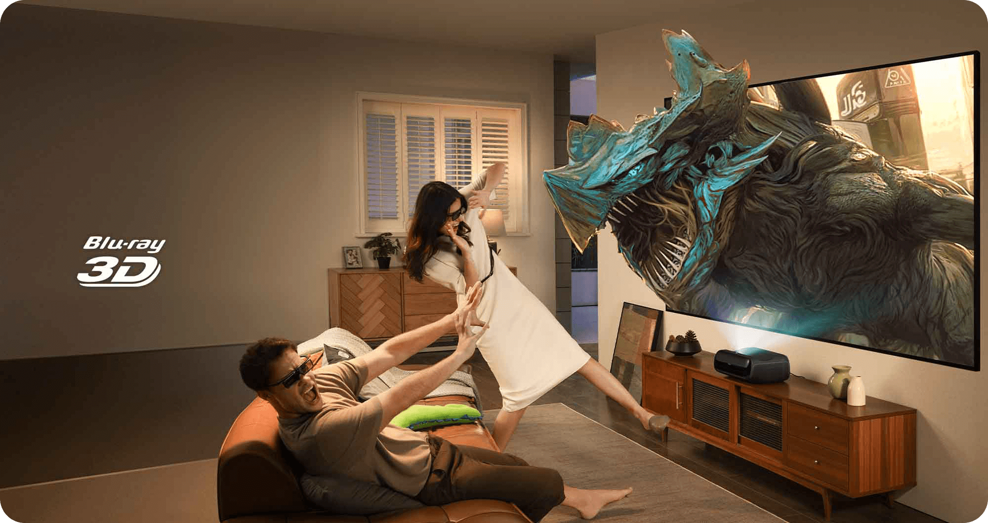 - 0.16:1 Ultra Short Throw: Enjoy a massive 100" display from only 6.6 inches away from the wall — a breakthrough design that’s even shorter than 0.25:1, delivering more flexibility in any space.