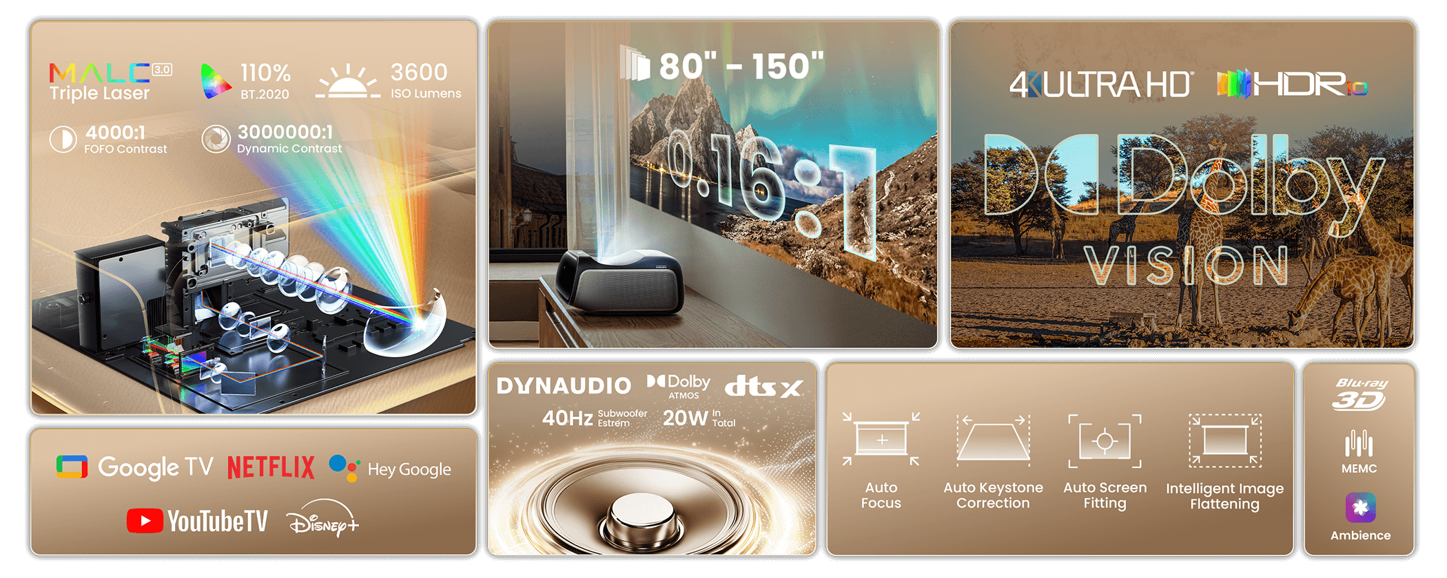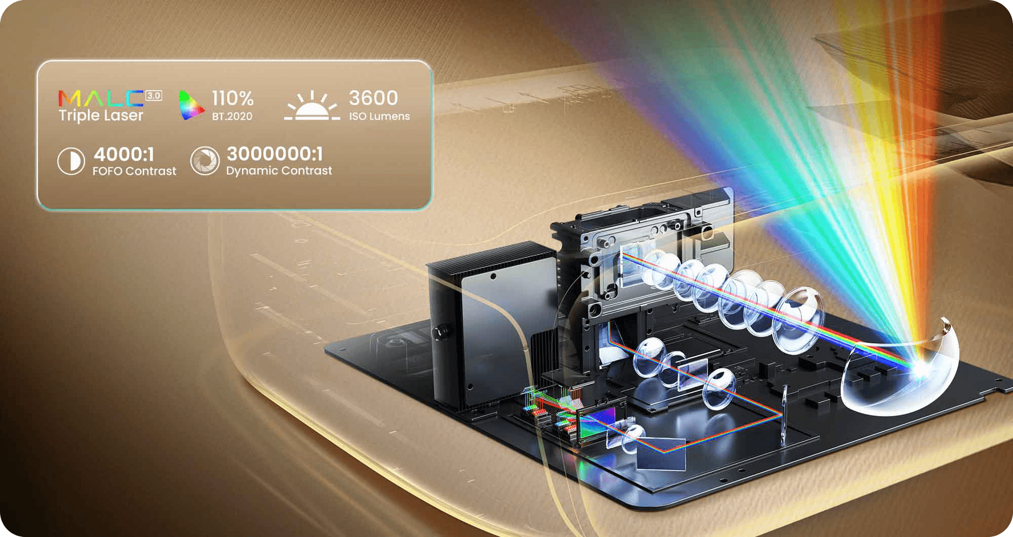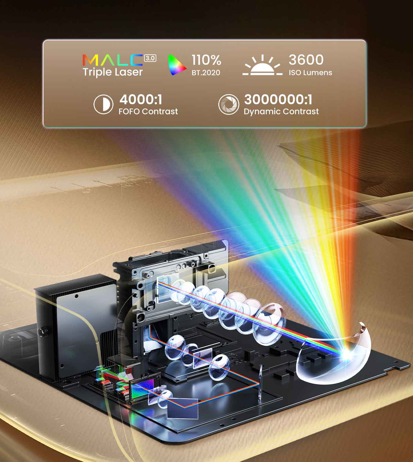 - MALC™ RGB Pure Triple Laser 3.0-Powered 4K Resolution: it delivers ultra-clear 4K visuals—crisp even in daylight—with lifelike colors and delicate details for a vivid, immersive viewing experience.