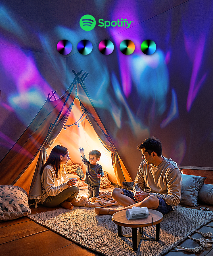 3-in-1 Entertainment Hub: PicoPlay integrates a mini projector, immersive Bluetooth speaker, and dynamic ambient light (Requires Optical Filter) to instantly set the mood for movies, parties, or chill sessions.