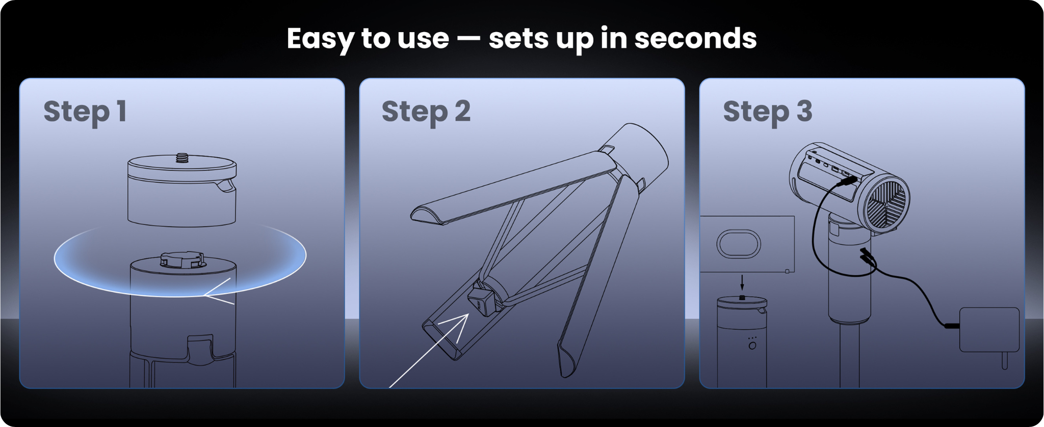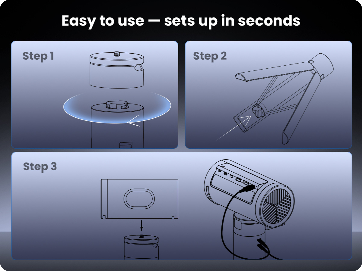 - ● Space Efficiency: Compact stand design helps maximize desk or table space while maintaining projector stability