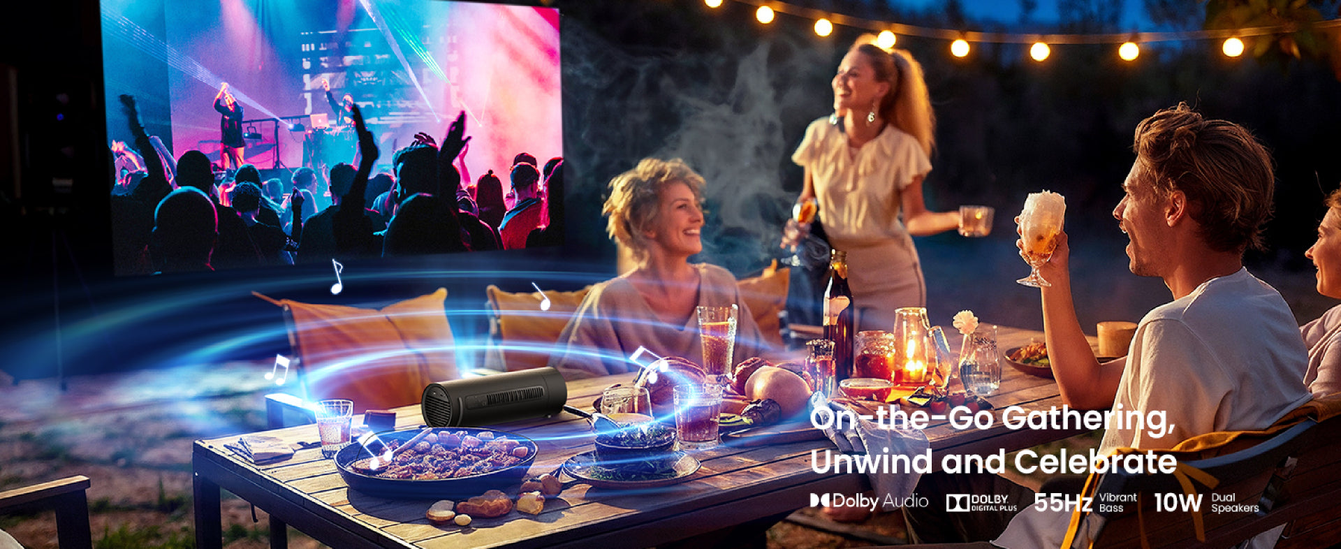 • Powerful Built-in Battery for True Portability: Equipped with a high-capacity 10,000 mAh internal battery, this compact projector (about the size of a bottle) offers up to 4.5 hours of uninterrupted movie time — no need to plug in, even on the go.